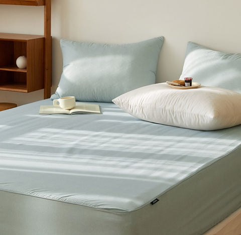 用頭髮粗幼1/100以下的薄紗細密織造,使外部污染物質不易渗入的新材料,水分吸收/乾燥卓越,可快速吸收睡眠中排出的汗水,幫助睡眠。重量輕身,洗滌後乾燥快,是很好的床上用品材質。