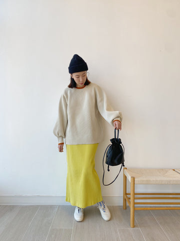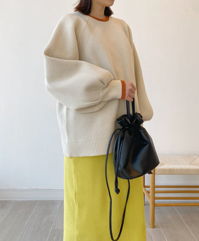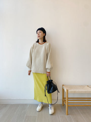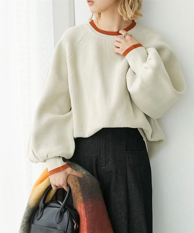 [11.11優惠]撞色燈籠䄂針織上衣/米白