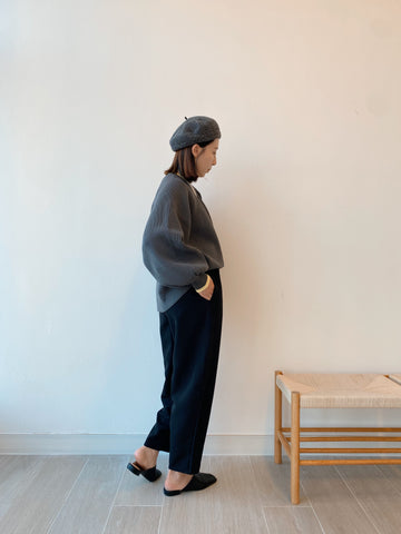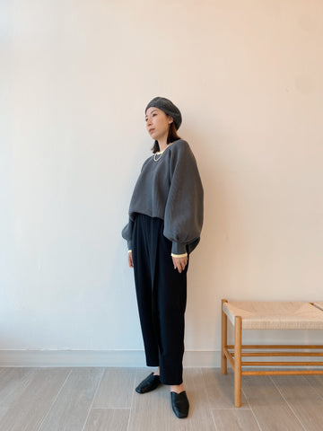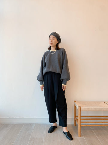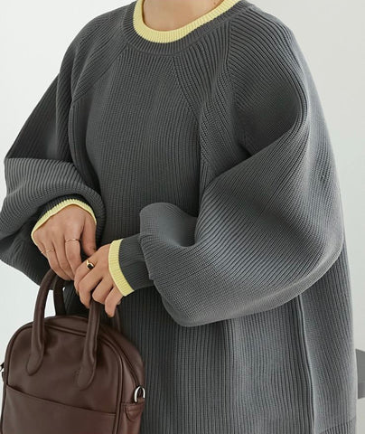 [11.11優惠]撞色燈籠䄂針織上衣/深灰