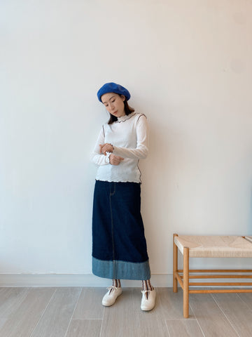 Ruffle衫腳T-shirt/米白
