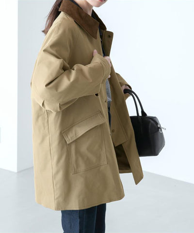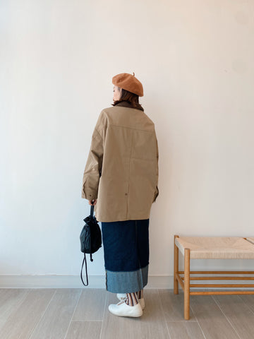 [11.11優惠]燈芯絨領中長Trench Coat/卡其