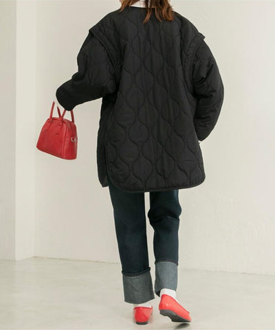 [11.11優惠]2 way 可拆䄂中長間棉外套/黑(12月頭到貨)