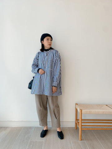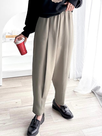 [11.11優惠]摺褶修腳西褲/杏色