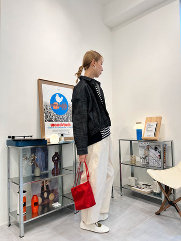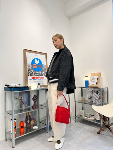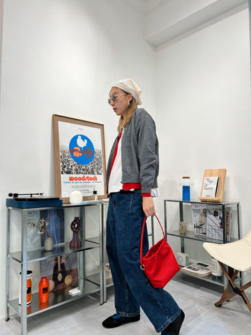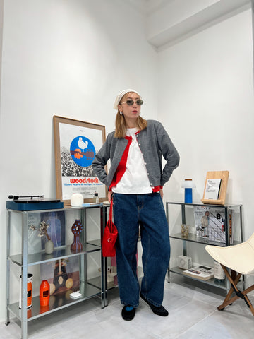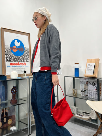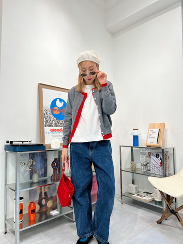 併色cardigan/灰+紅