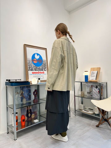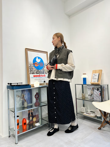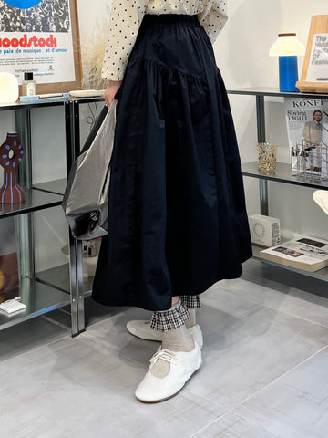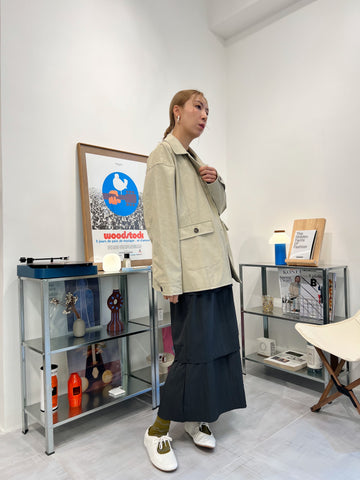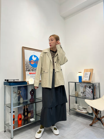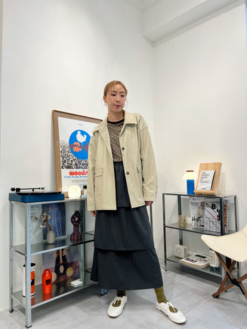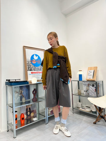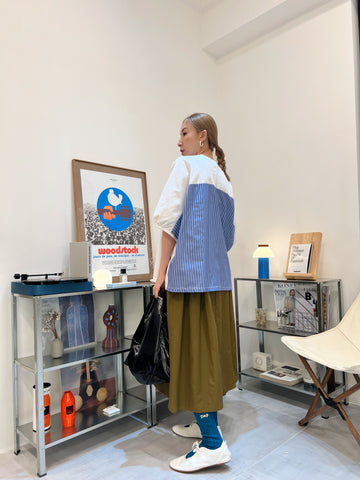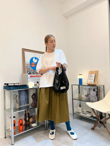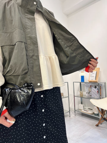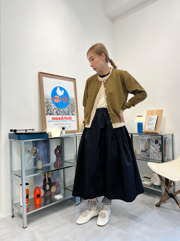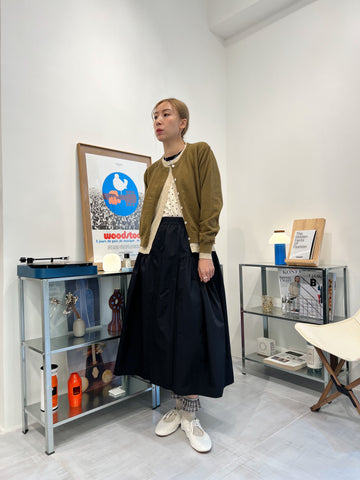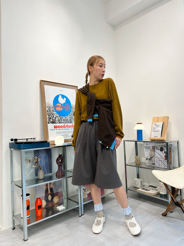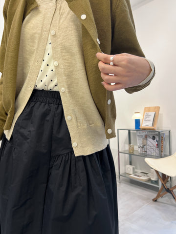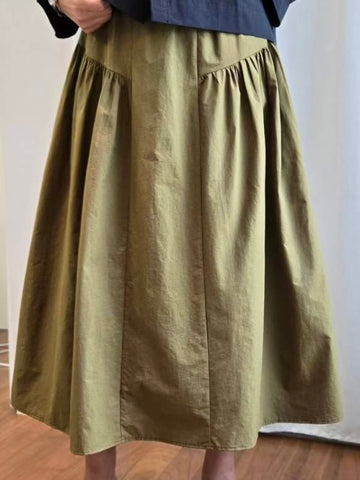 兩側縮褶散裙/橄欖