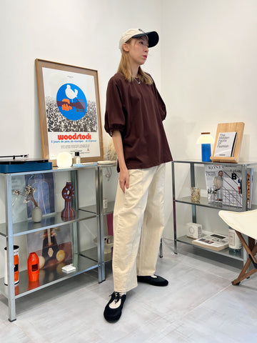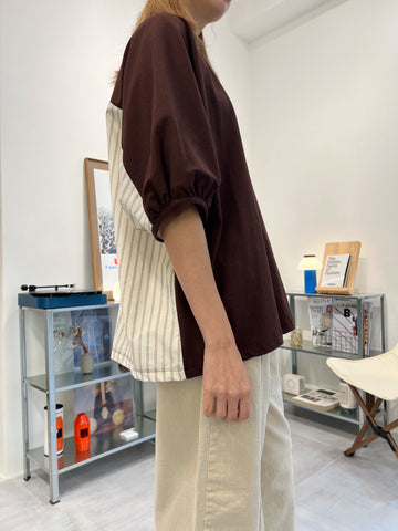 後併布泡泡袖T-shirt/啡