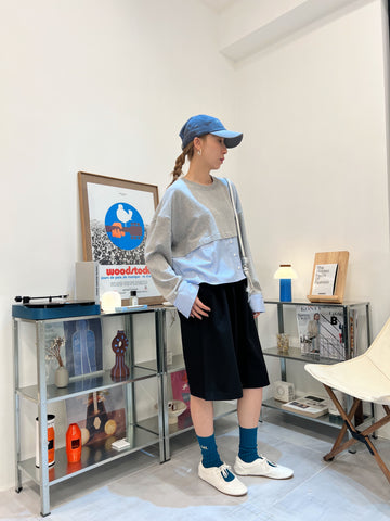 撞色領袖waffle T-shirt/灰