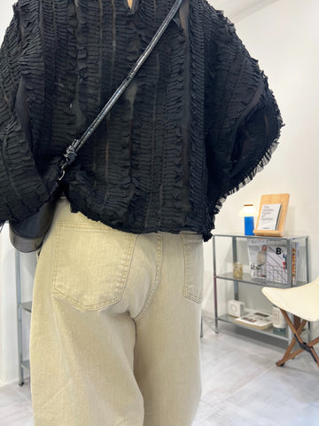 Ruffle衫腳T-shirt/米白