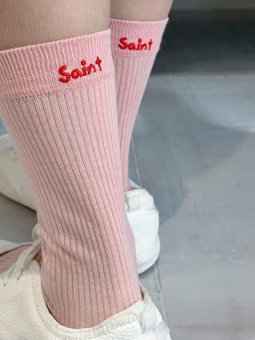 繡字薄襪/粉紅