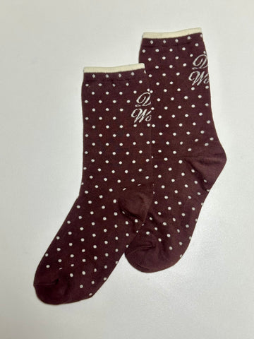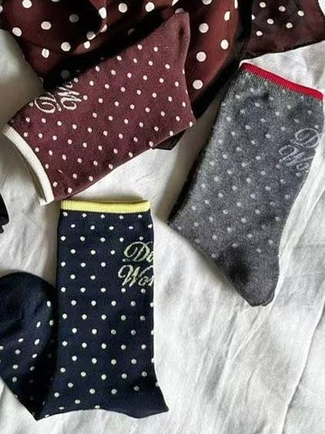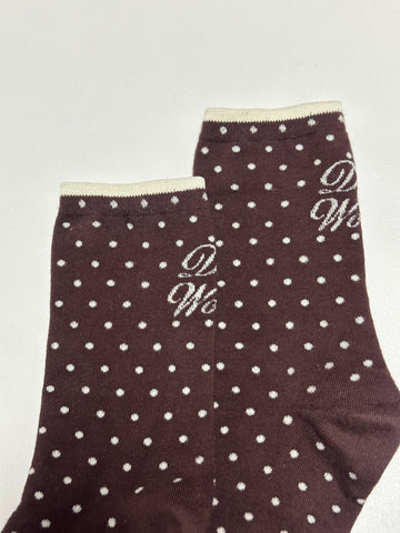波點文字襪/啡+米白