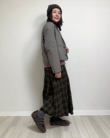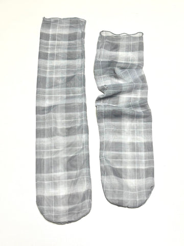 格仔半透襪/灰
