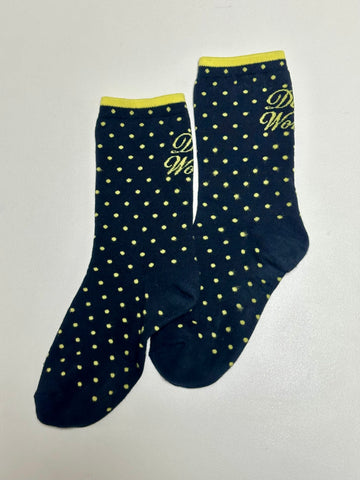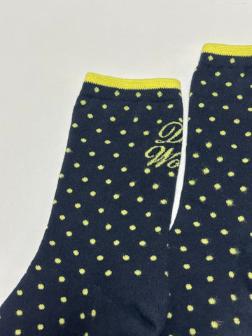 波點文字襪/深藍+黃