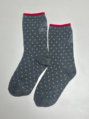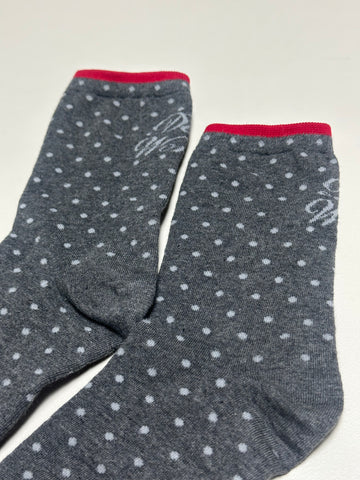 波點文字襪/灰+紅