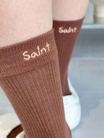 繡字薄襪/啡